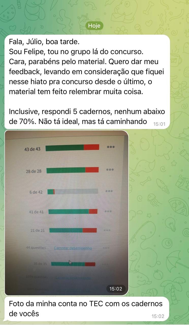 As questões disponibilizadas são previamente selecionadas conforme o assunto, o perfil da banca e o nível de dificuldade. O objetivo é promover um estudo ativo, com identificação de pontos frágeis e aprendizado por meio dos erros. Nosso curso utiliza o TECConcursos. Com isso, a preparação torna-se aprofundada, prática e verdadeiramente orientada para o resultado.